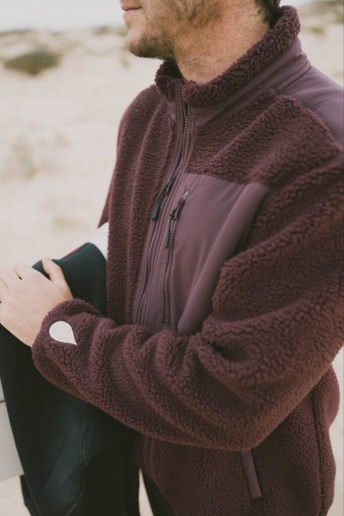 Look outerwear et raffiné. Notre sherpa allie style, confort et fonctionnalité. En polyester 100% recyclé issu de bouteilles plastiques usagées, c’est l’article idéal à porter avant ou après vos sessions de surf.